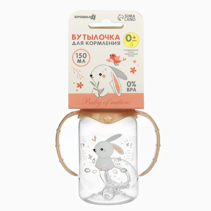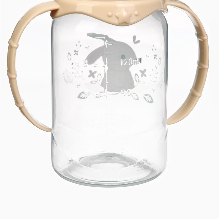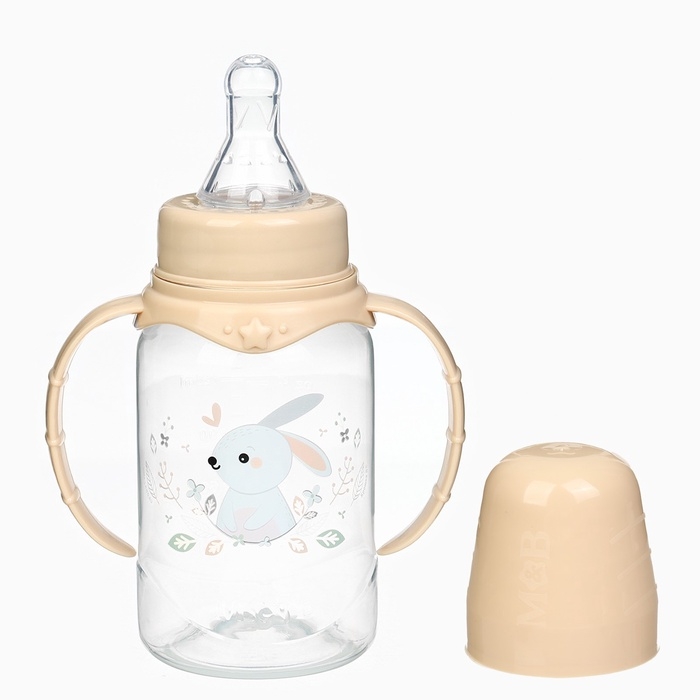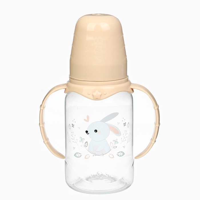 Бутылочка для кормления «Зайчик» 150 мл, цилиндр, с ручками, цвет бежевый