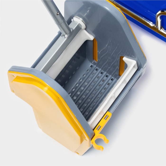 - Тележка оснащена отжимом с механическим приводом. С ним вы можете выжать моп без разводов и луж.