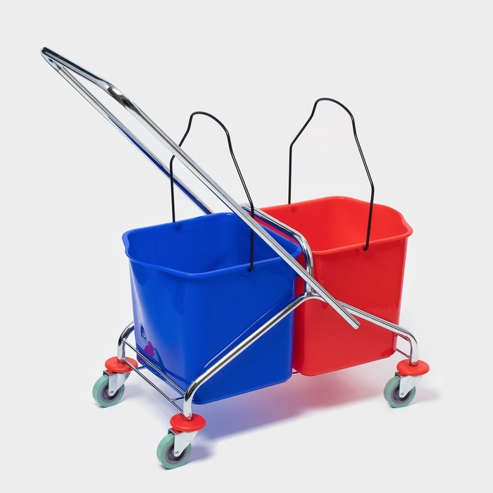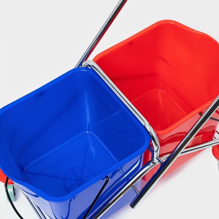 Тележка для уборки с вертикальным отжимом, два ведра по 25 литров, на колёсах, хромированная рама