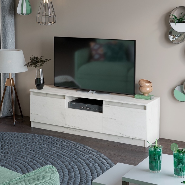 - Внутри тумбы предусмотрены полки для хранения DVD-плеера, игровой консоли, аудиоаппаратуры и других аксессуаров.