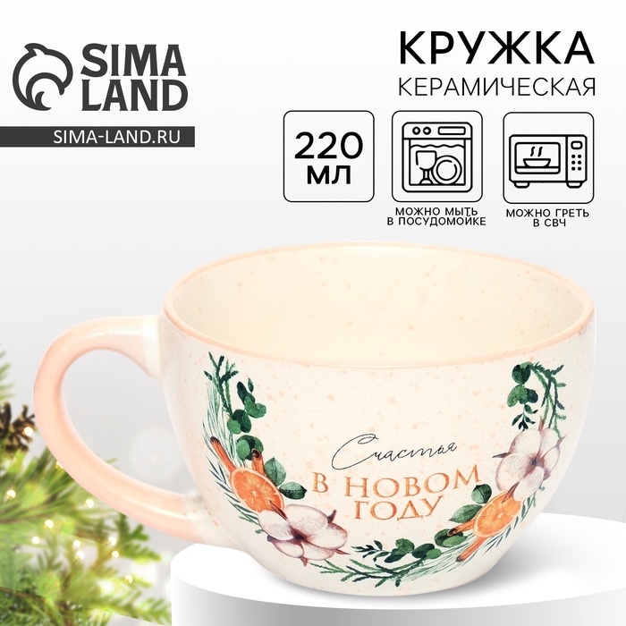 Кружка керамическая новогодняя Дорого внимание «Счастье в новом году», 220 мл