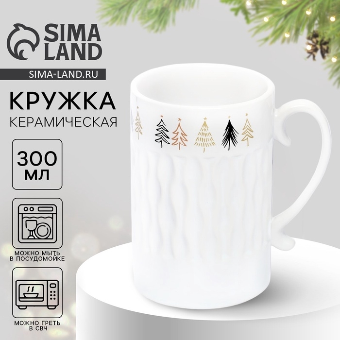 Кружка с рельефом керамическая новогодняя Дорого внимание «Ёлочки», 300 мл