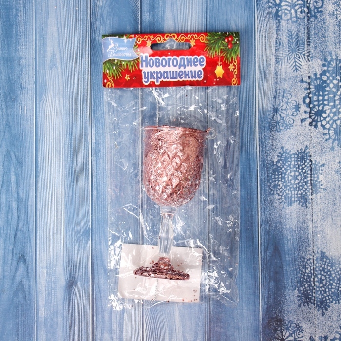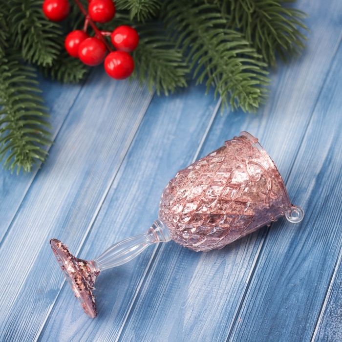 Ёлочная игрушка «Зимнее волшебство. Бокал сияние блеск» пластик, 10,5х4,5 см, прозрачно-розовый