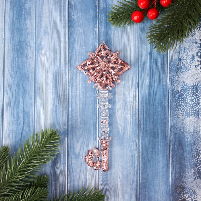 Ёлочная игрушка «Зимнее волшебство. Ключик сияние блеск» пластик, 16х6,5 см, прозрачно-розовый