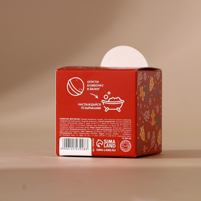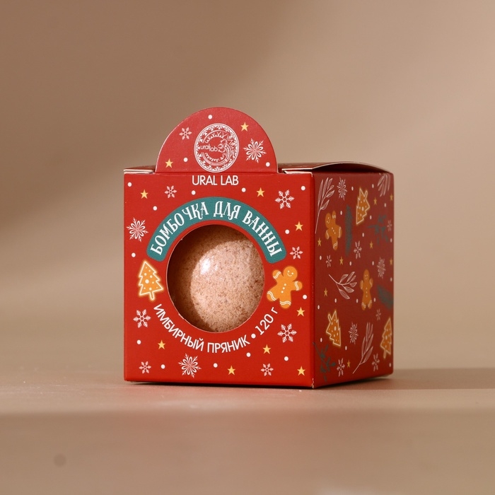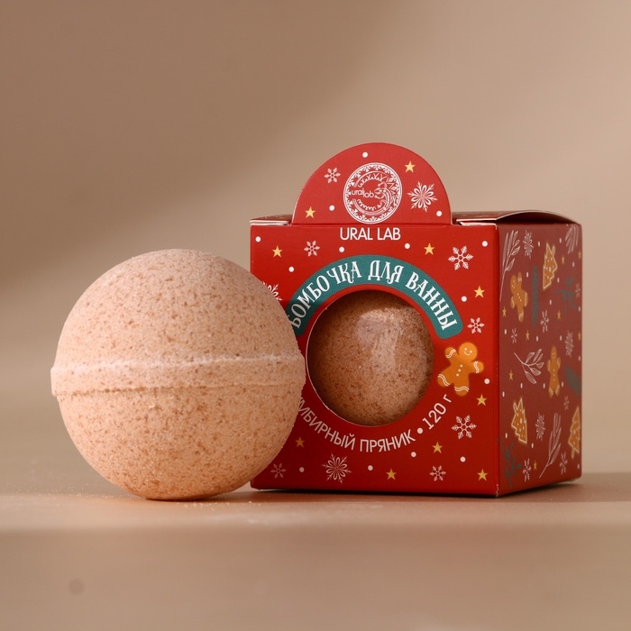 Бомбочка для ванны URAL LAB, 120 г, аромат имбирного пряника, Новый Год