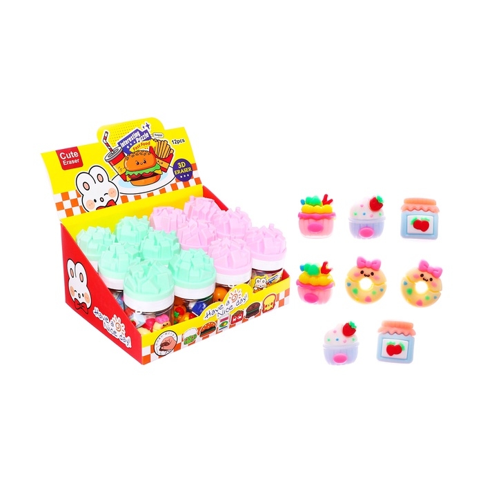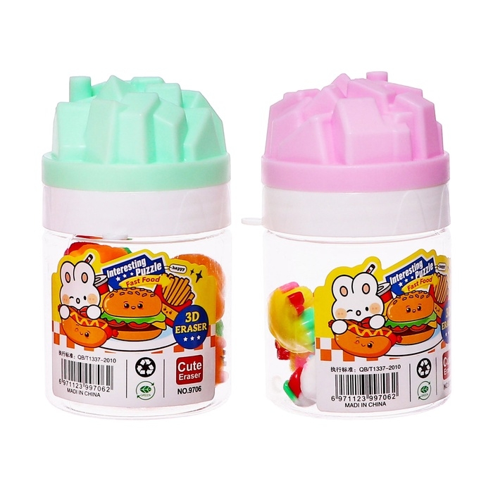 Набор ластиков фигурных 8 штук в пластиковой коробке МИКС Фастфуд