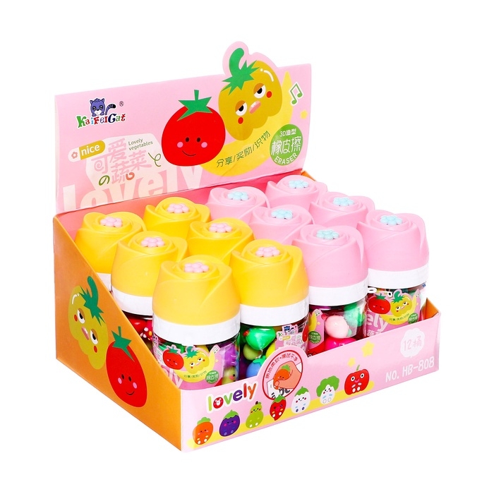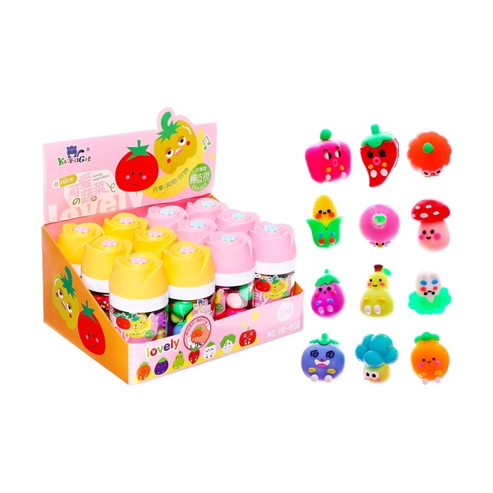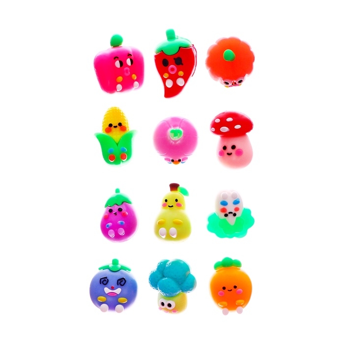 Набор ластиков фигурных 12 штук в пластиковой коробке МИКС Фрукты/Ягоды/Овощи