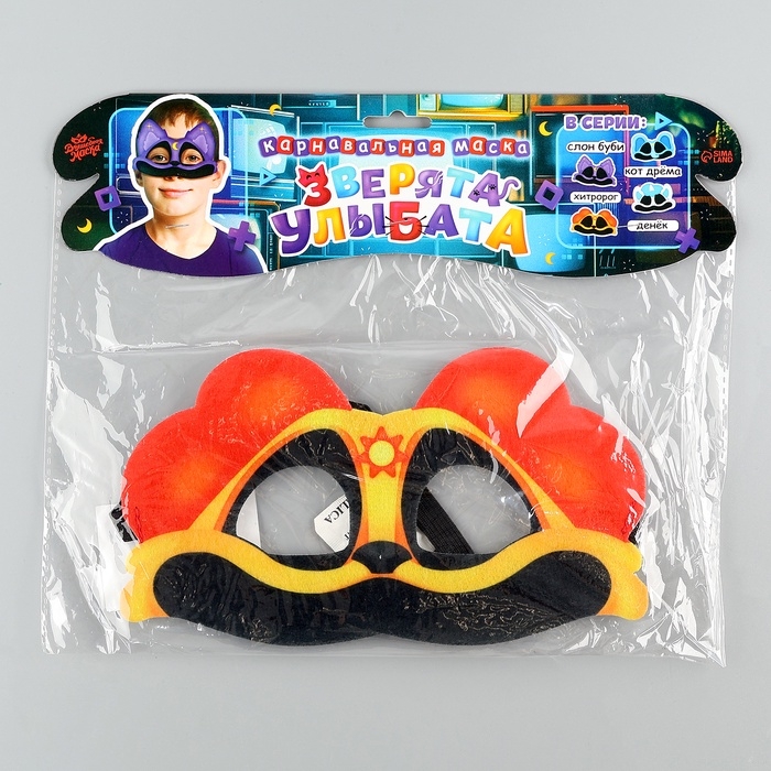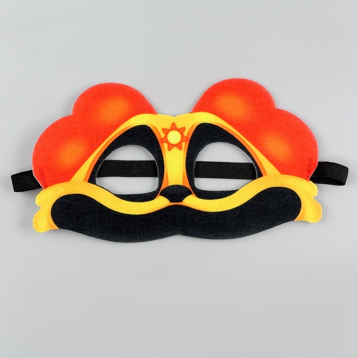 Карнавальная маска «Зверята улыбата. Щенок Денёк» — это милый и оригинальный аксессуар для любого праздника. Маска выполнена из мягкого фетра оранжевых оттенков и украшена забавной мордочкой щеночка. Она надежно фиксируется на голове с помощью резинки.