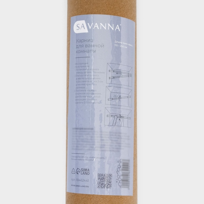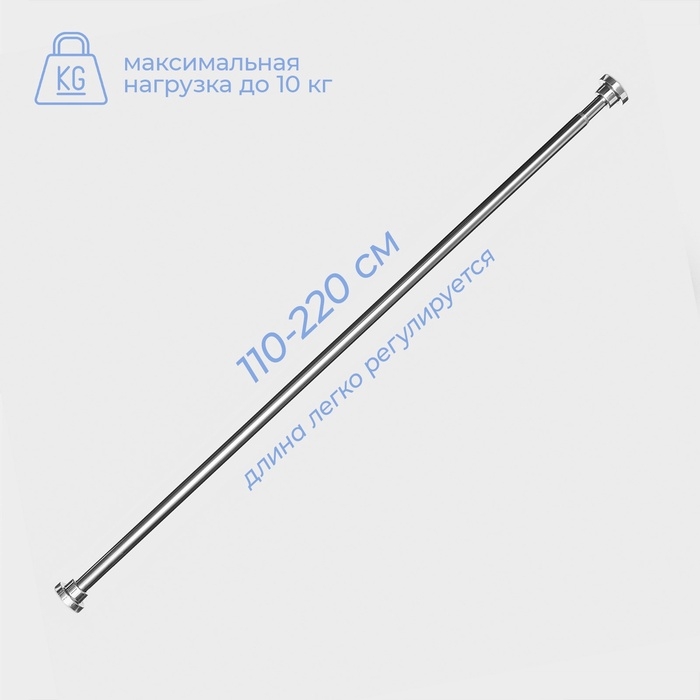 Карниз для ванной SAVANNA, телескопический, d заглушки = 5.3 см, d трубки = 2.5 см, 110-220 см, нержавеющая сталь, хромированный