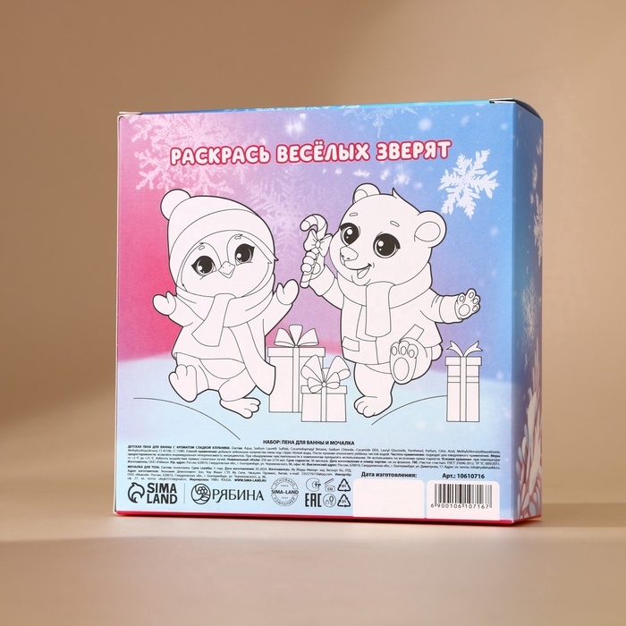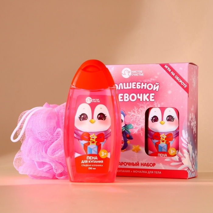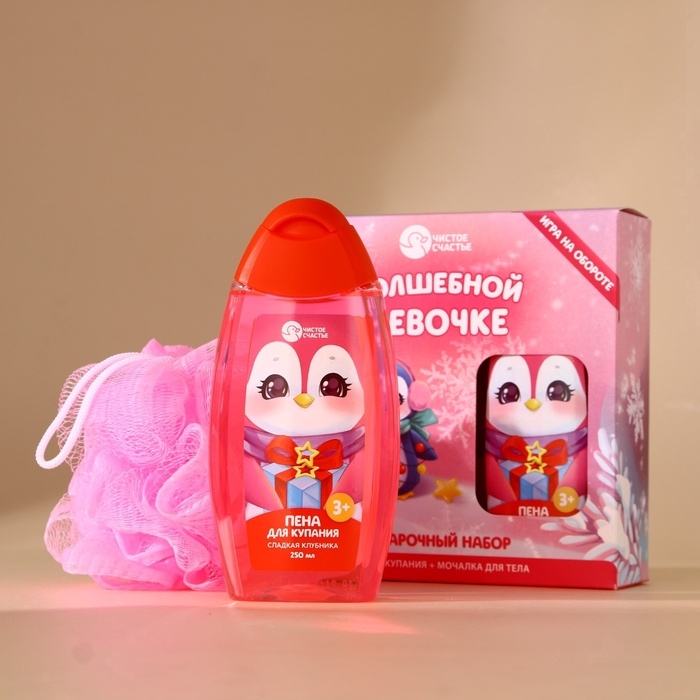 Подарочный набор детский ЧИСТОЕ СЧАСТЬЕ «Волшебной девочке»: пена для ванны 250 мл и мочалка для тела, Новый Год