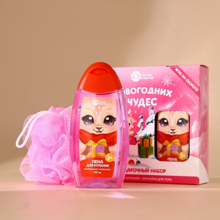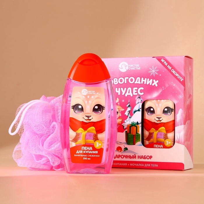 Подарочный набор детский ЧИСТОЕ СЧАСТЬЕ «Чудес!»: пена для ванны 250 мл и мочалка для тела, Новый Год