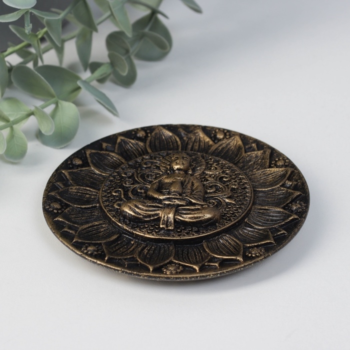 Подставка под благовония полистоун "Будда медитирует" золото 9,8x9,8x1 см