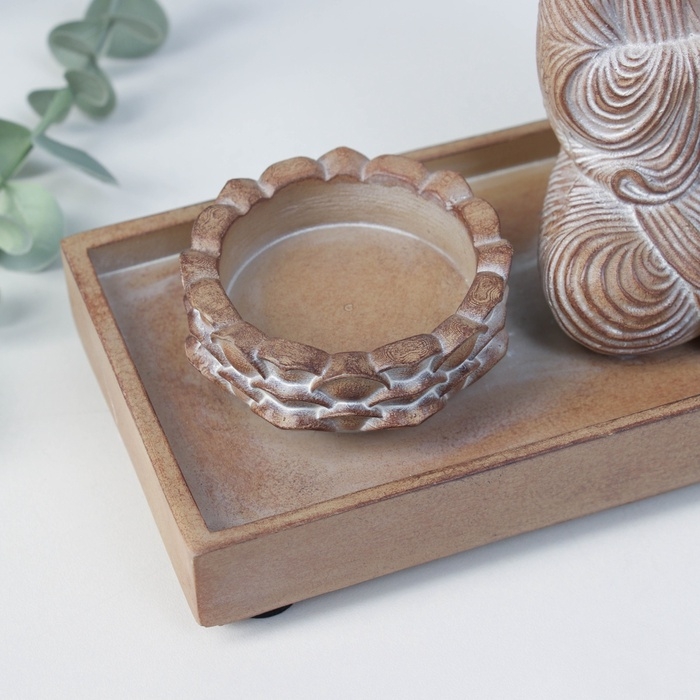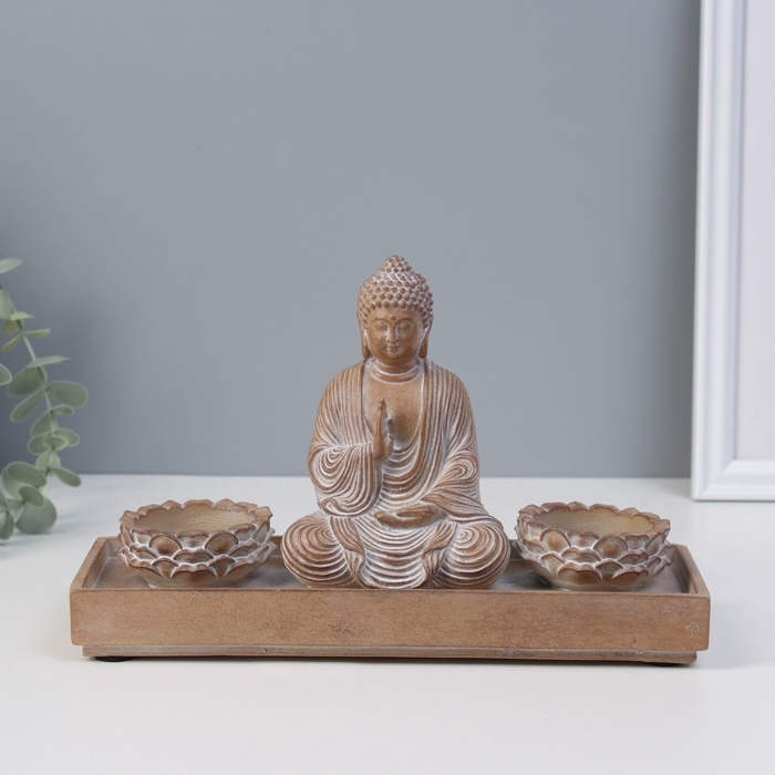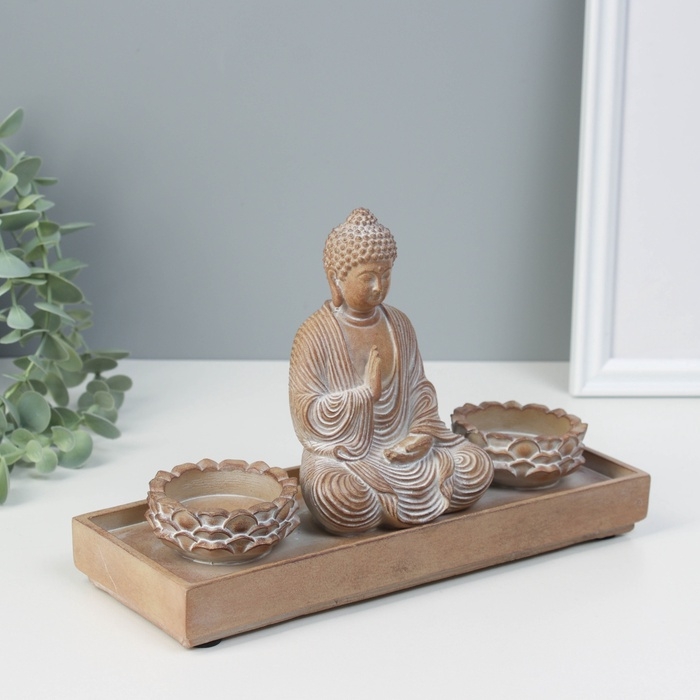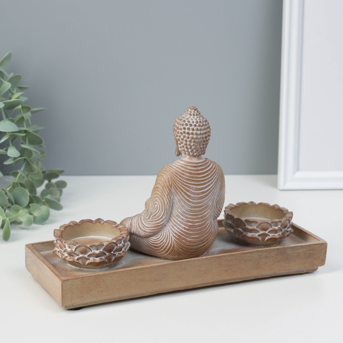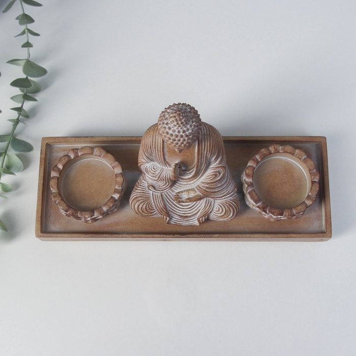 Сувенир полистоун подсвечник на 2 свечи "Будда - медитация" под серебро 8,7х24,3х15 см