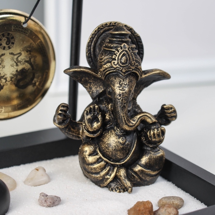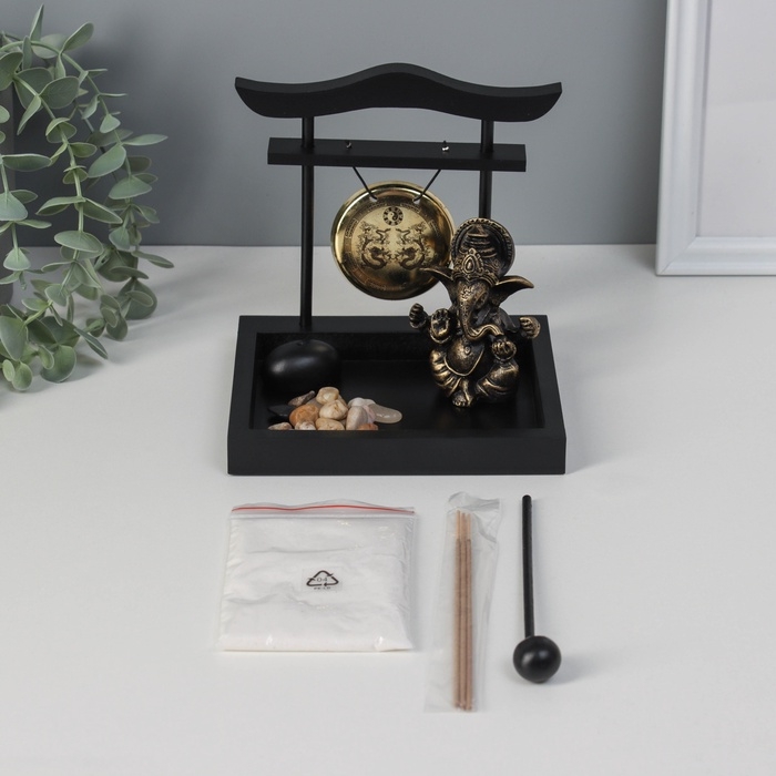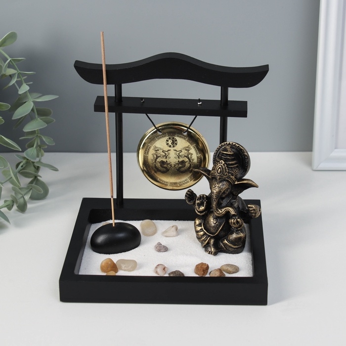 Сад Дзен "Ганеша у гонга" песок+камни+аромапалочка 13,2х15х15,5 см