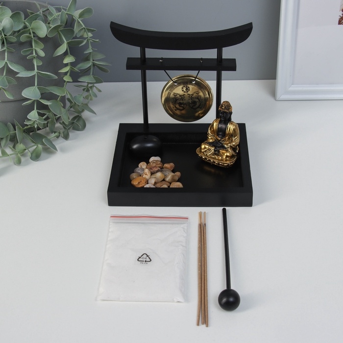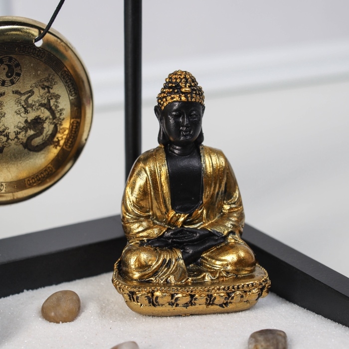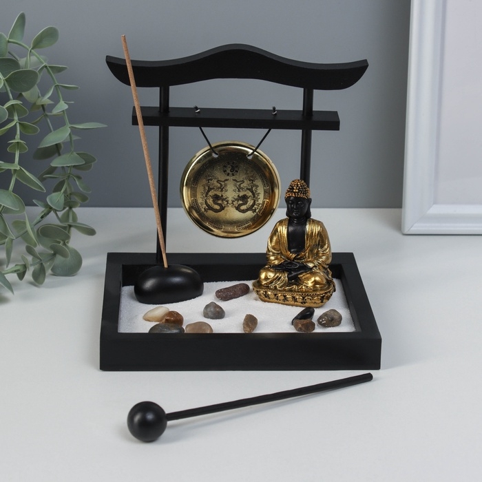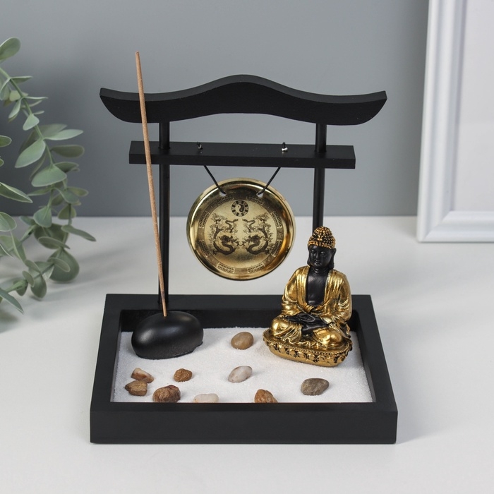 Сад Дзен "Будда в золотом у гонга" песок+камни+аромапалочка 13,2х15х15,3 см