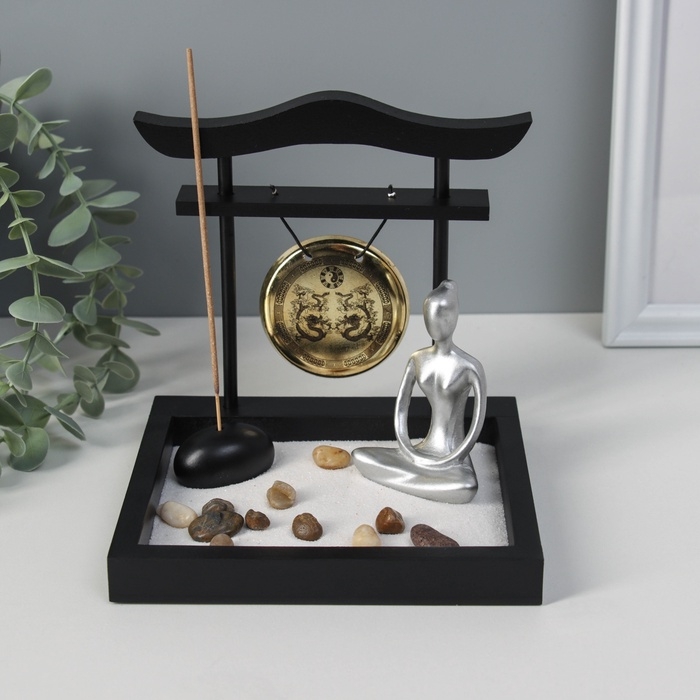 Сад Дзен "Медитация инь-ян у гонга" песок+камни+аромапалочка 13,2х15х15,3 см