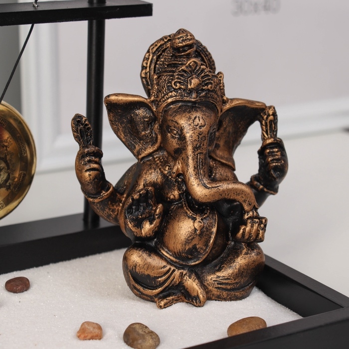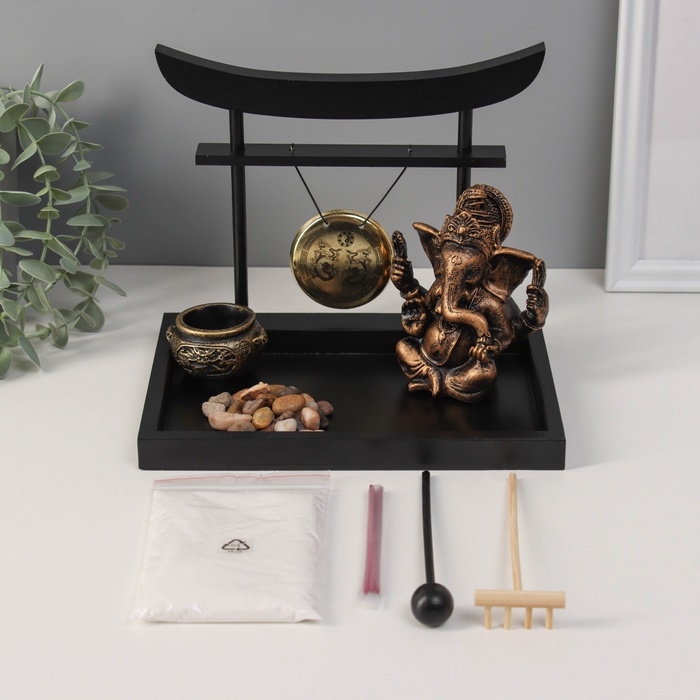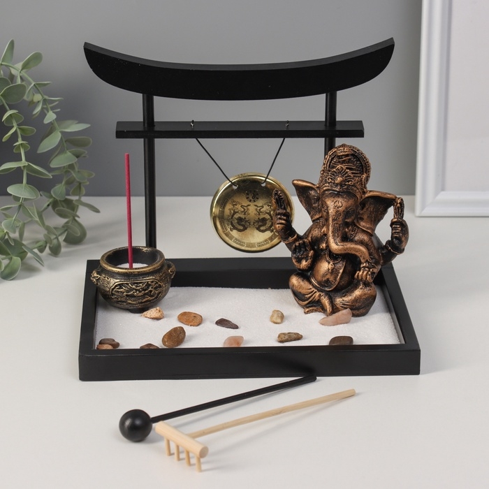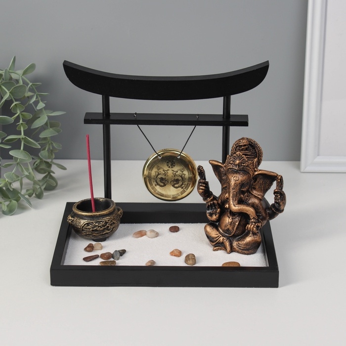Сад Дзен "Ганеша у гонга" песок+камни+аромапалочки+свеча 16х22х19 см