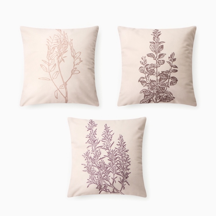Чехол на подушку Этель "Botanic" 3 шт, 40*40 см, велюр 100% п/э