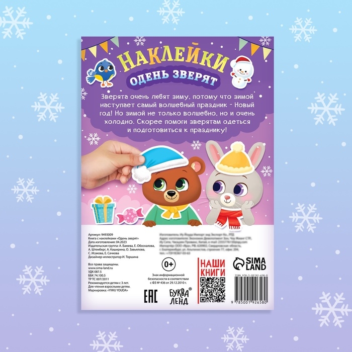 Книга новогодняя с наклейками «Одень зверят»