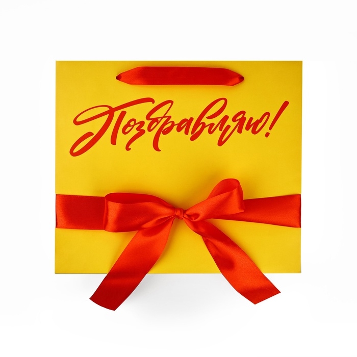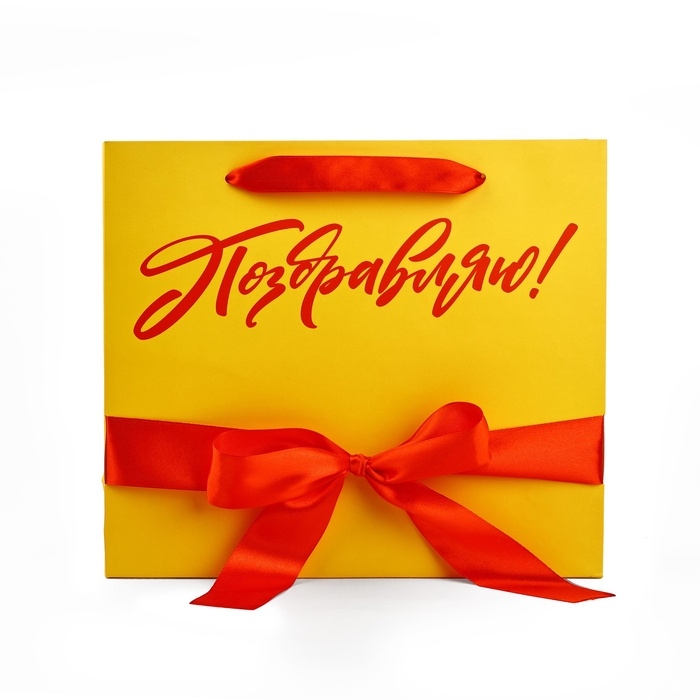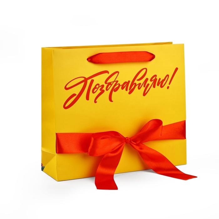 Пакет ламинированный с лентой «Поздравляю», M 30 х 9 х 26 см
