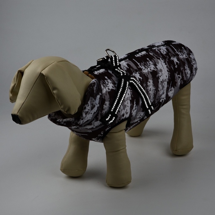- Металлические крепления для поводка: Куртка оснащена специальными креплениями для поводка, что делает её идеальным выбором для активных прогулок и гарантирует безопасность вашего питомца.