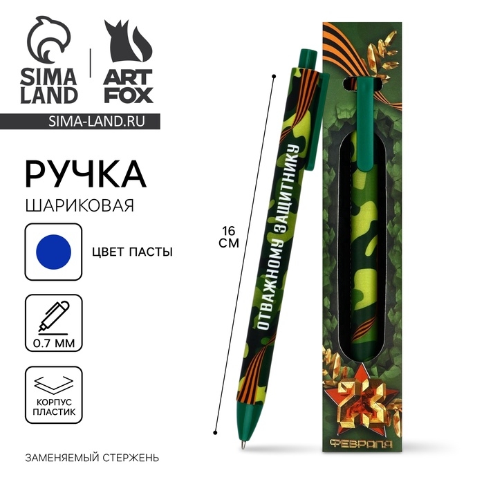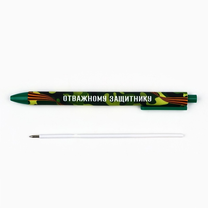 Ручка шариковая, синяя паста, 0.7 мм, автоматическая, в конверте «Отважному защитнику»