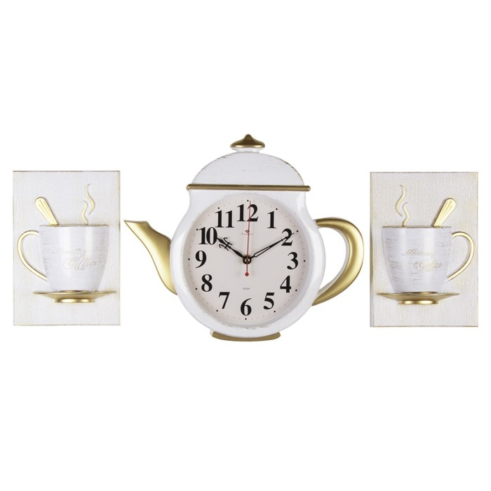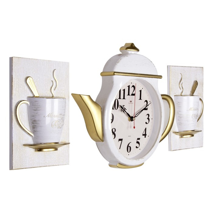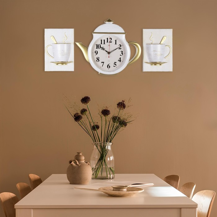 Часы настенные, для кухни "Чайник и две чашки", бесшумные, 29 х 34 см, белые