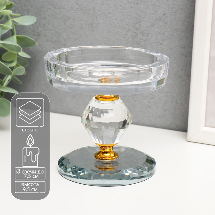 Подсвечник стекло на 1 свечу "Кристалл ромб" 9,5х9х9 см