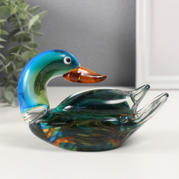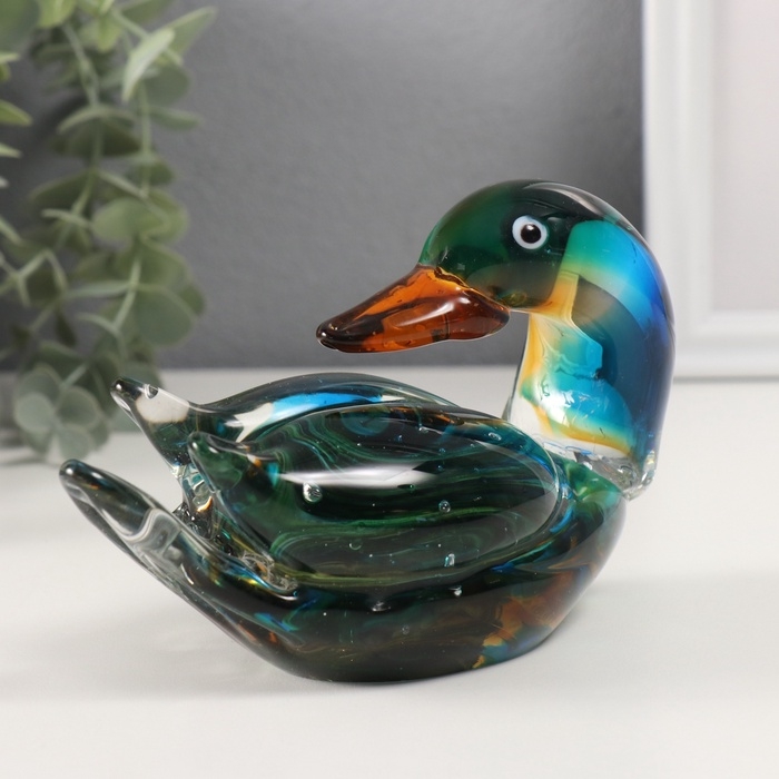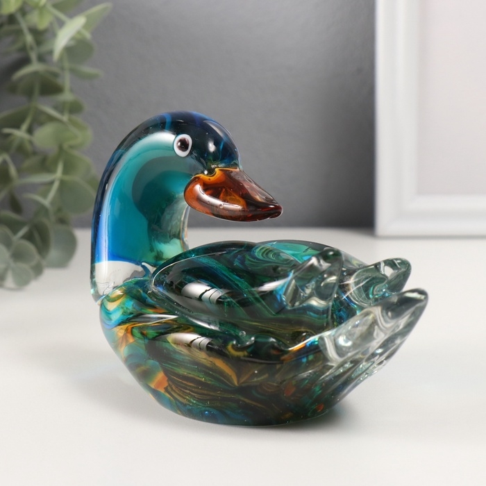 Сувенир стекло "Уточка-мандаринка" зелёный 8х15,5х9,5 см