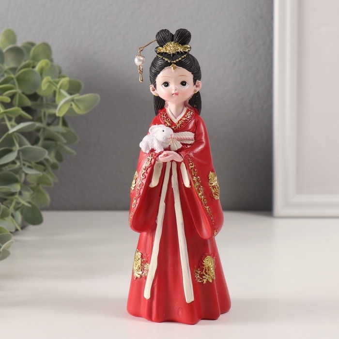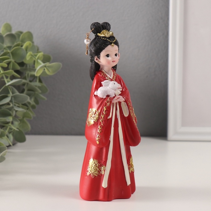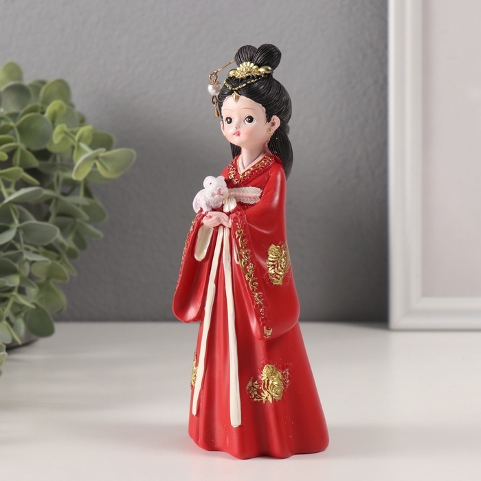 Сувенир полистоун "Девочка в кимоно" красный 5,2х6х18 см