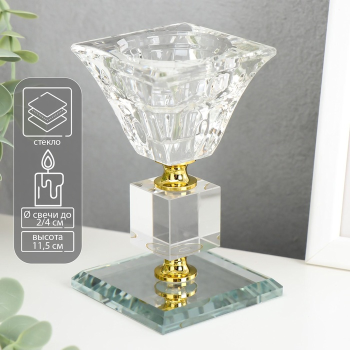 Подсвечник стекло на 1 свечу "Кристалл куб" 11,5х6,5х6,5 см