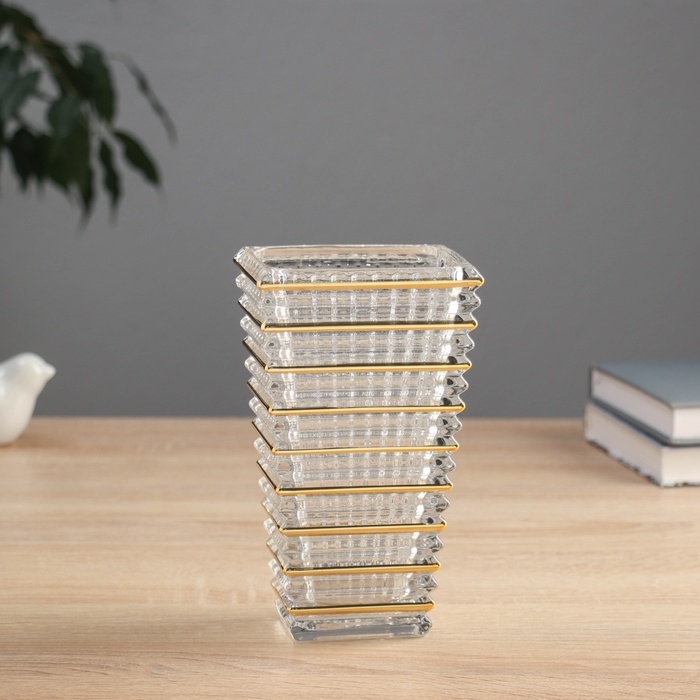 Ваза стекло настольная "Милагрос" полосы объём, h-17,5см, d-10х7 см, прозрачный