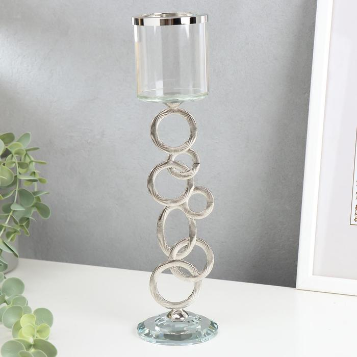 Подсвечник стекло на 1 свечу "Сплетение колец" стразы серебро 27х7х7 см