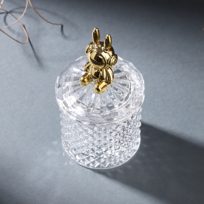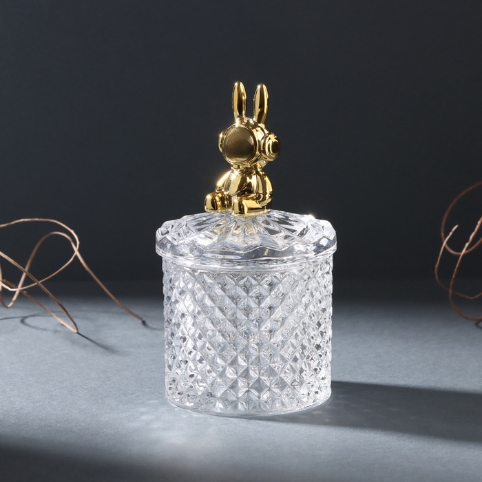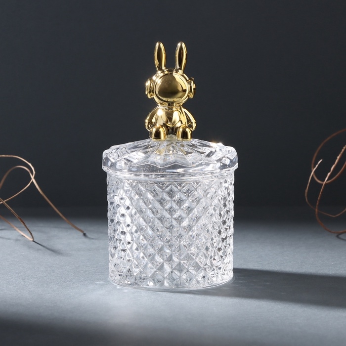 Шкатулка стекло "Заяц в наушниках. Ромбы" золото 6х6х12 см
