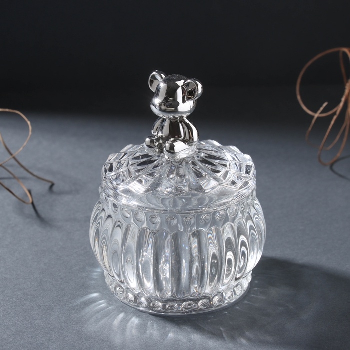 Шкатулка стекло "Мишка" серебро 8х8х10 см