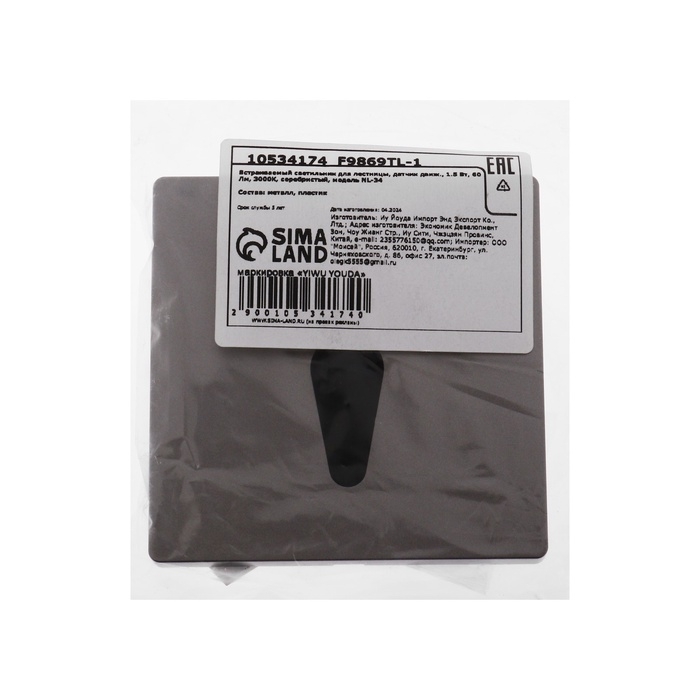 Встраиваемый светильник для лестницы, NL-34, датчик движ. 1.5 Вт, 60 Лм, 3000К, серебристый