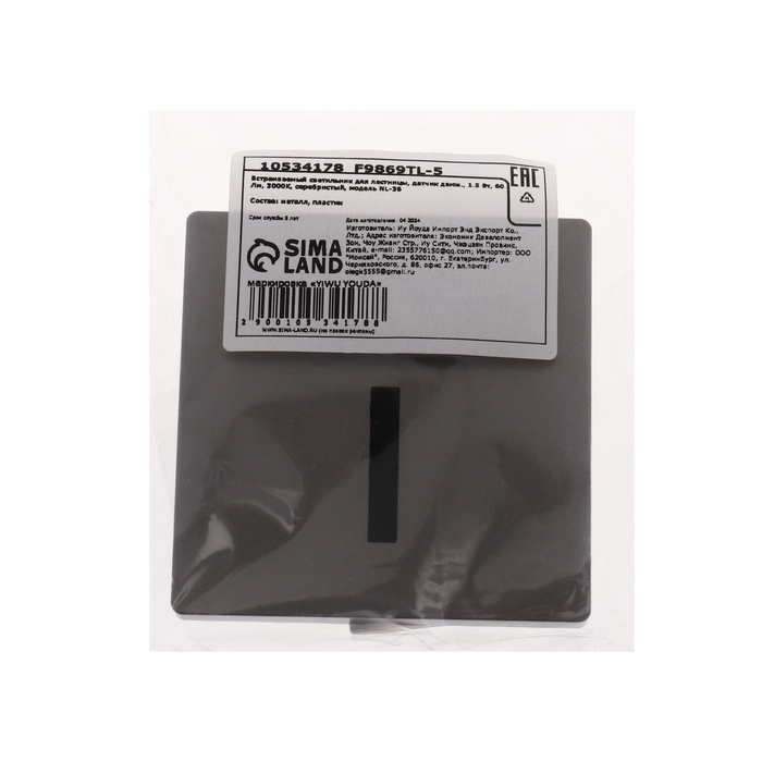 Встраиваемый светильник для лестницы, NL-36, датчик движ, 1.5 Вт, 60 Лм, 3000К, серебристый