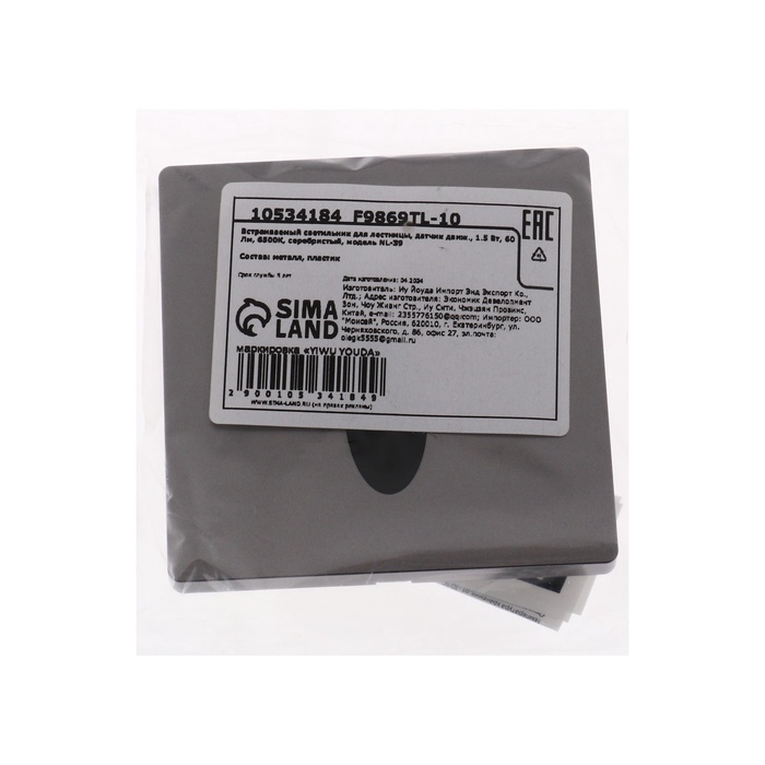 Встраиваемый светильник для лестницы, NL-39, датчик движ, 1.5 Вт, 60 Лм, 6500К, серебристый