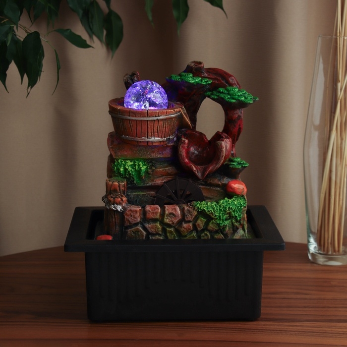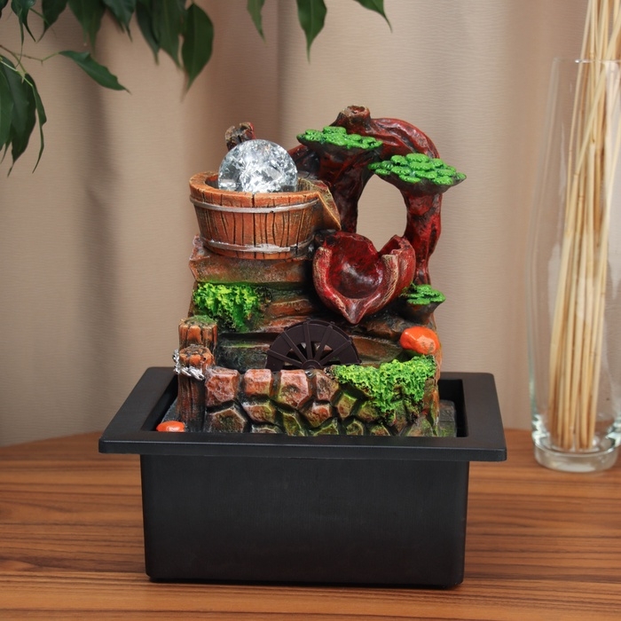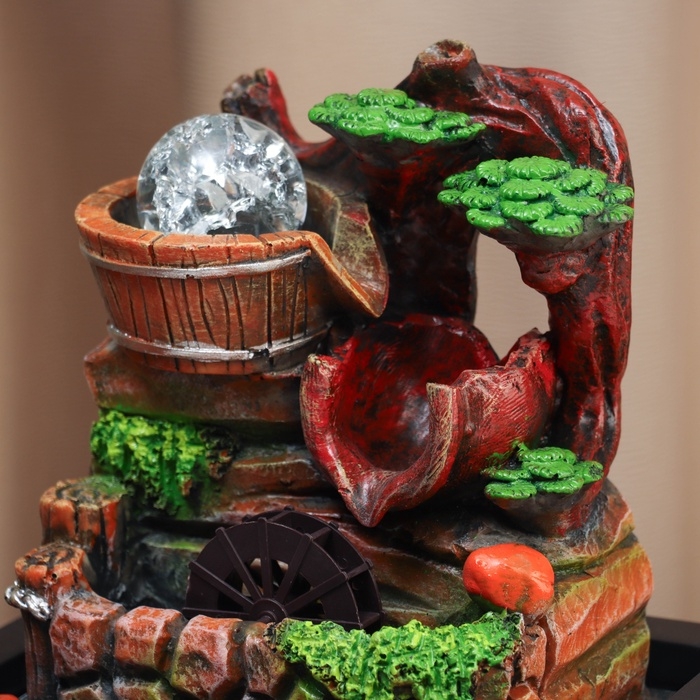 Фонтан "Водопад из бочек под деревом" 28х23 см (с подсветкой)