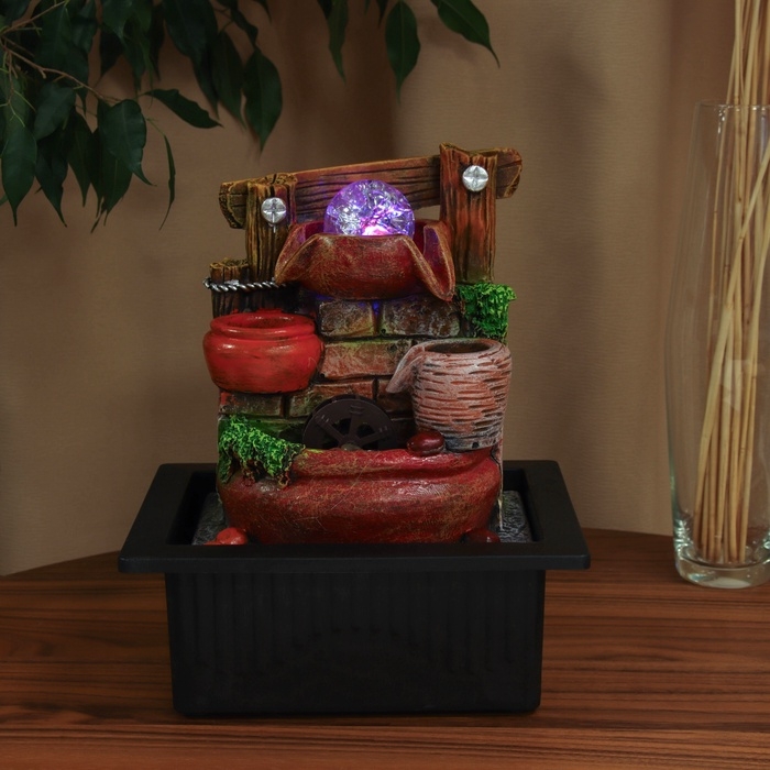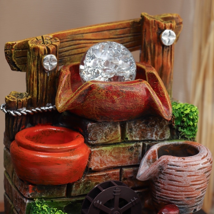 Фонтан "Бочки у каменной стены с забором" 28х23 см (с подсветкой)