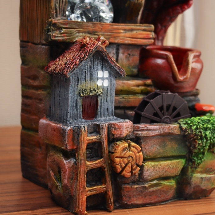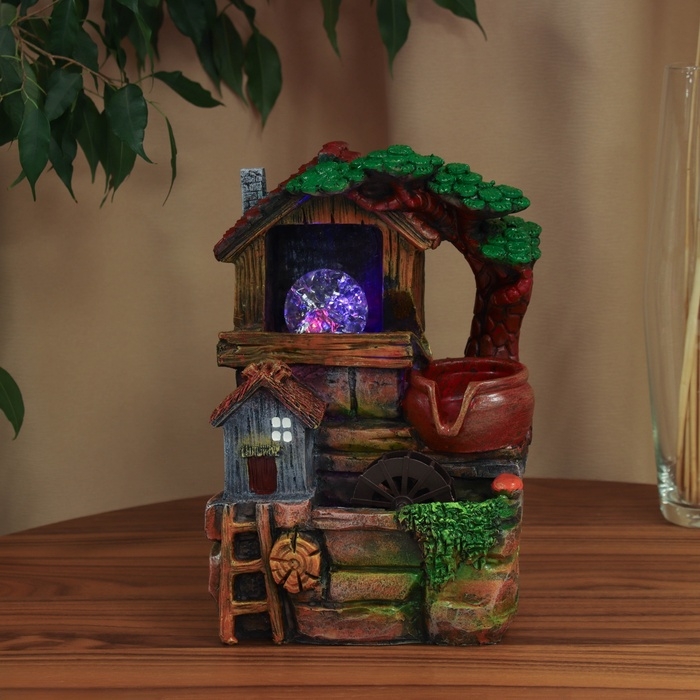 Фонтан "Домики с лестницей под деревом " 27х19 см (с подсветкой)