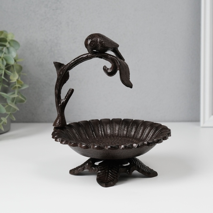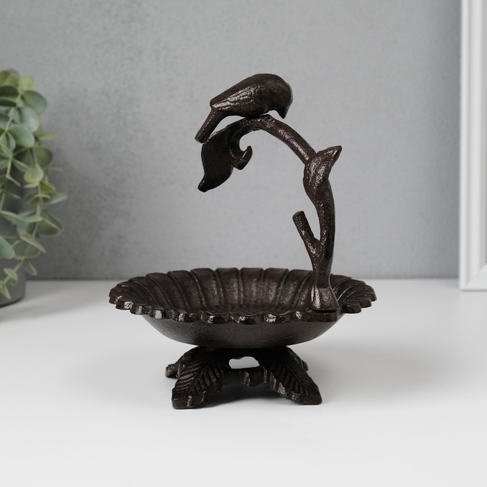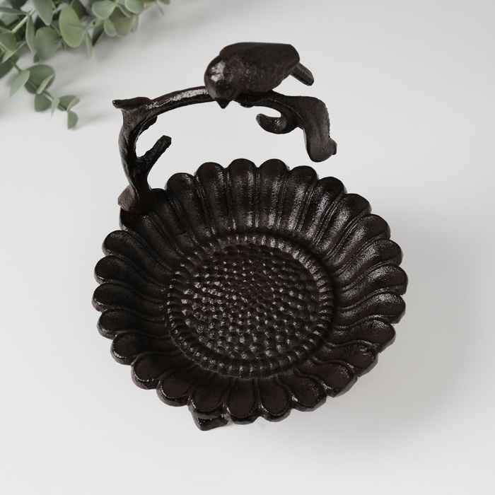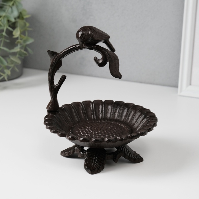 Сувенир чугун подставка "Птичка на ветке над цветком" 17х15х13,5 см