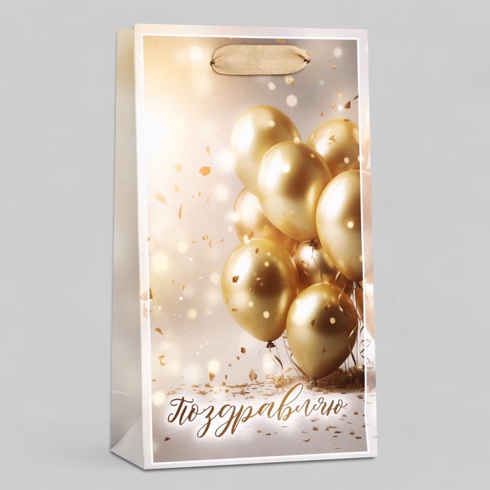 Пакет подарочный ламинированный "Поздравляю",13 х 23 х 7 см