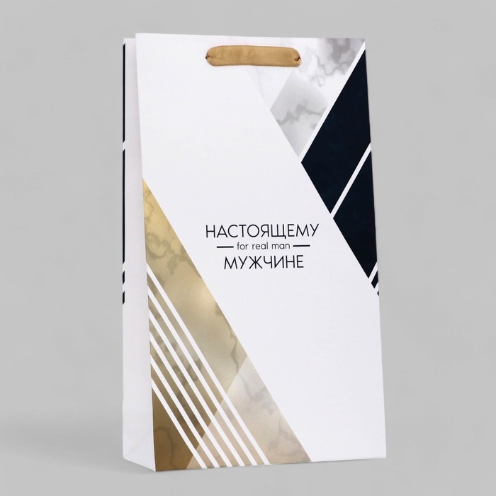 Пакет подарочный ламинированный под две бутылки "Настоящему мужчине!", 35 х 20 х 9 см