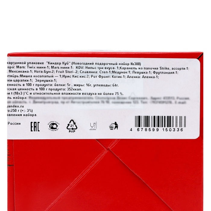 Внутри "Киндер Куба" скрываются разнообразные сладости, которые понравятся как детям, так и взрослым. Каждое угощение изготовлено из качественных ингредиентов и обещает незабываемые вкусовые наслаждения. Этот набор станет великолепным дополнением к праздничному столу, создавая атмосферу уюта и радости на вашем празднике. Кроме того, "Киндер Куб" — это отличный сюрприз под ёлкой, который обязательно вызовет восторг у детей и улыбки у взрослых. Подарите своим близким частичку счастья и сладости, и пусть Новый год станет началом незабываемых мгновений!