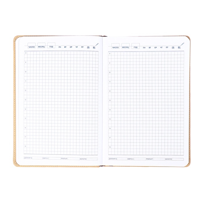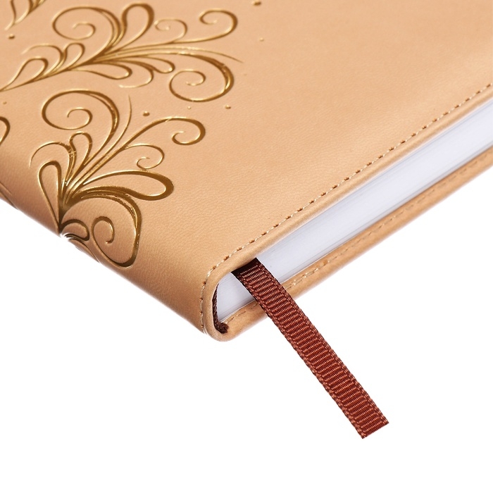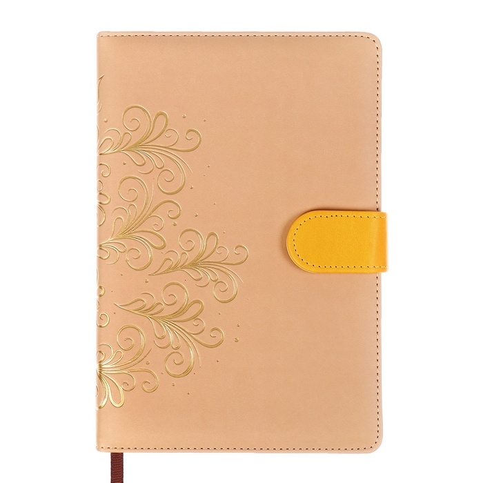 Ежедневник недатированный, обложка ПВХ, формат А5, 140 л, клетка, с хлястиком, Бежевый