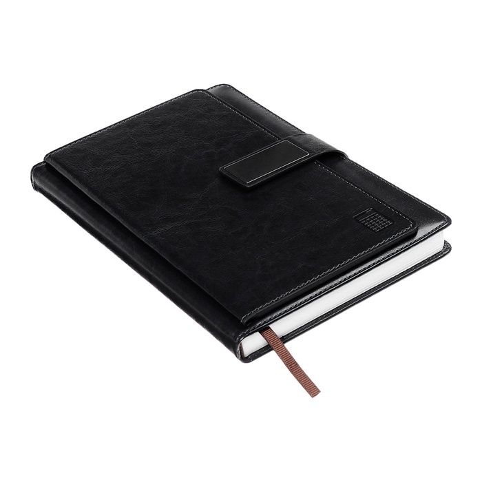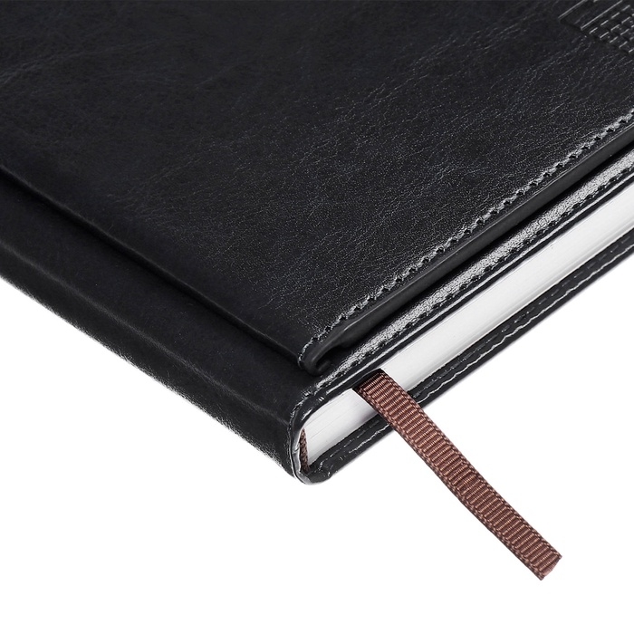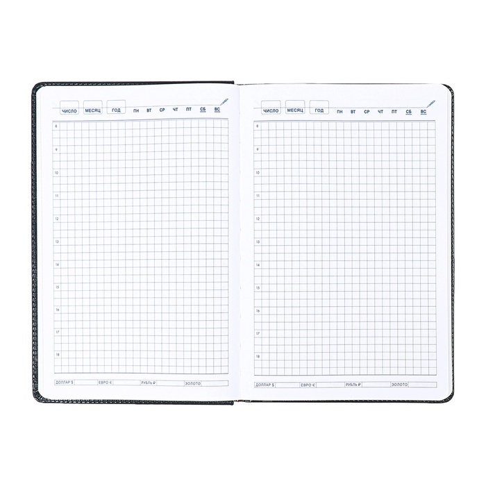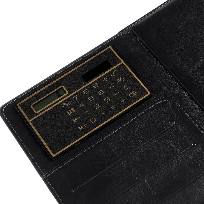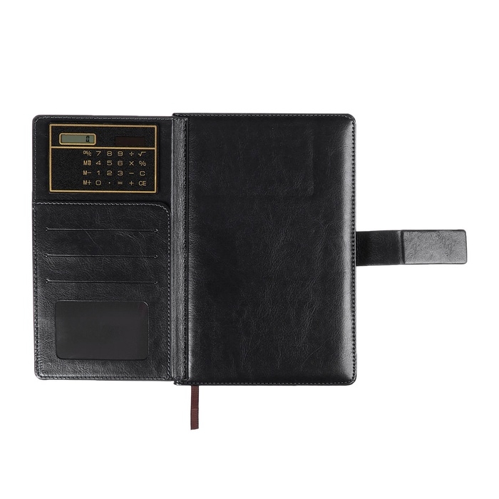 Ежедневник недатированный,формат А5, 140 листов, в клетку, обложка кожзам, с хлястиком, с калькулятором, чёрный