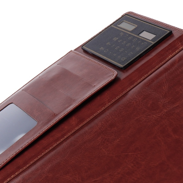 Ежедневник недатированный,формат А5, 140 листов, в клетку, обложка кожзам, с хлястиком, с калькулятором, коричневый