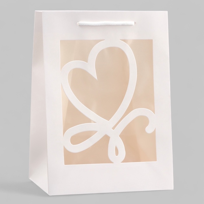 Этот нежный крафтовый бумажный пакет с фигурным окном в форме сердца создан для тех, кто ценит уют и романтику.