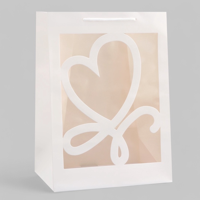 Этот нежный крафтовый бумажный пакет с фигурным окном в форме сердца создан для тех, кто ценит уют и романтику.